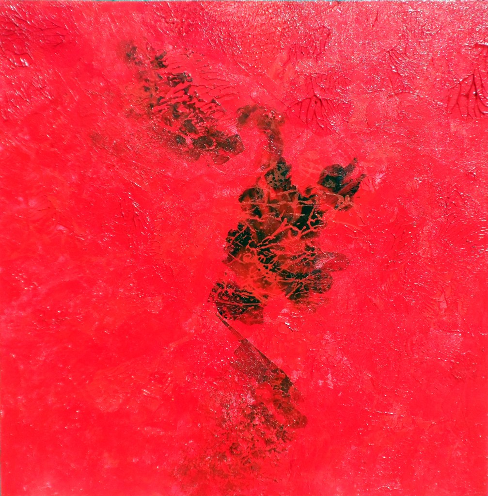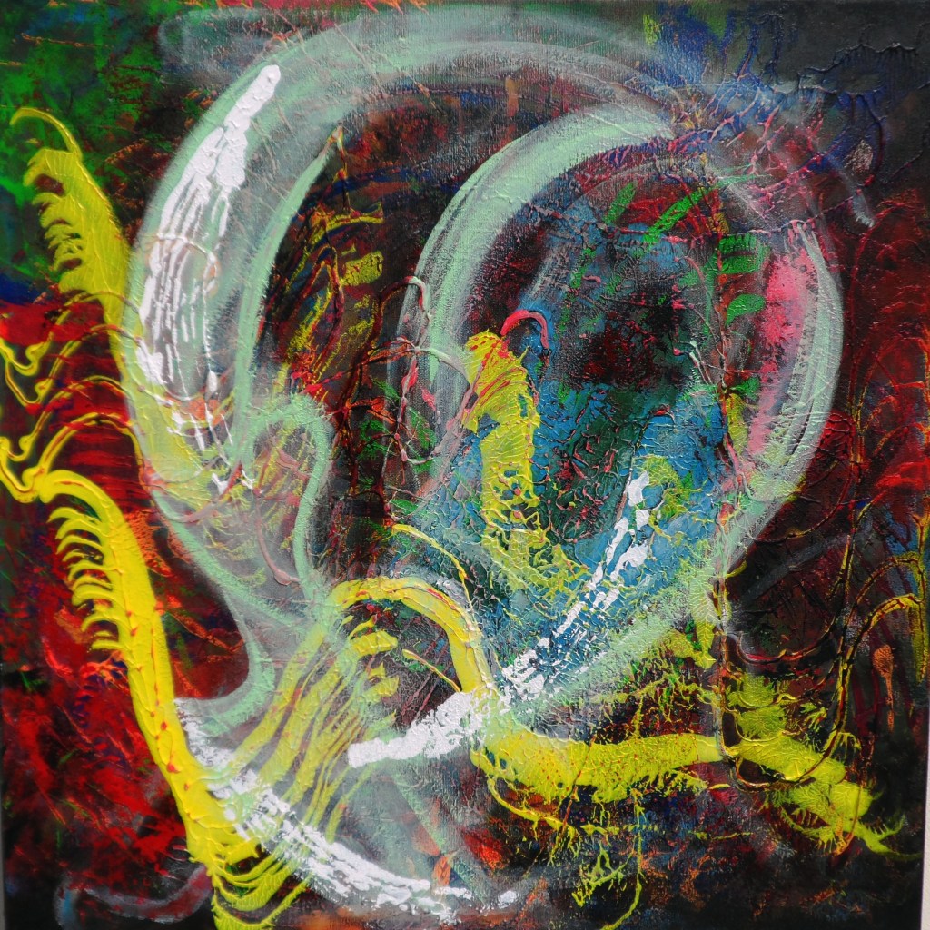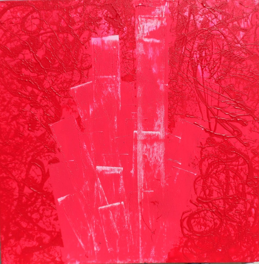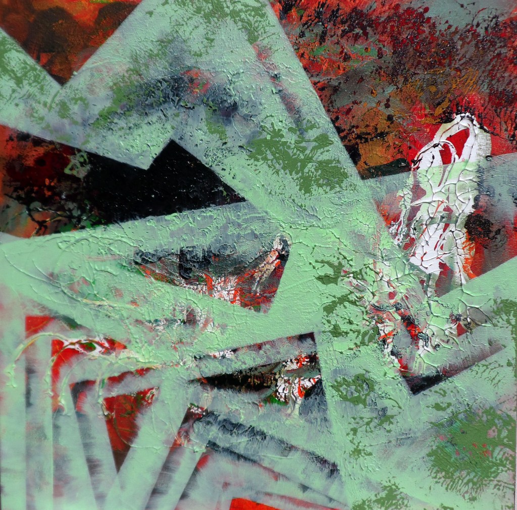 Edremit Zeytinli Köyü atölye çalışmaları dönemi; Soyut; geometrik ve organik kompozisyonlar. Tuval Üzeri Akrilik Çalışmalar ve Kağıt Kolajlar;