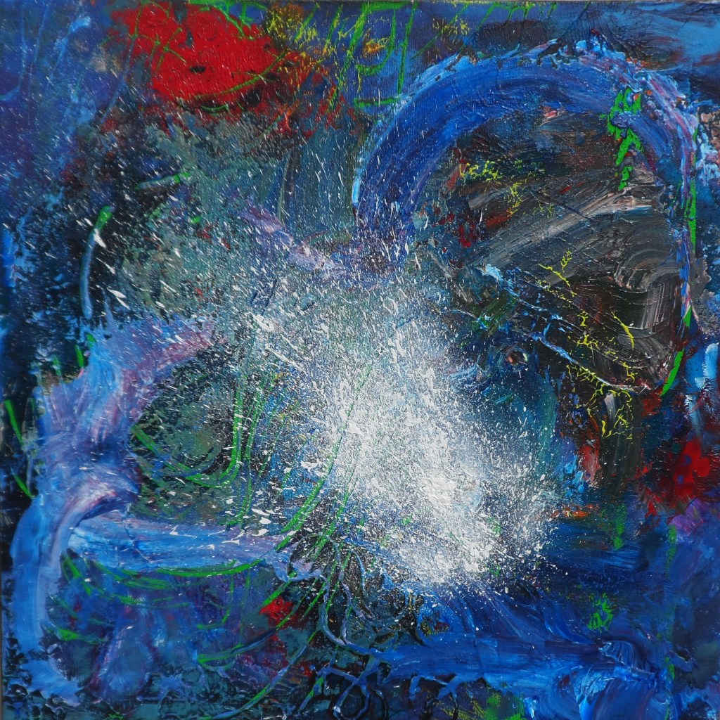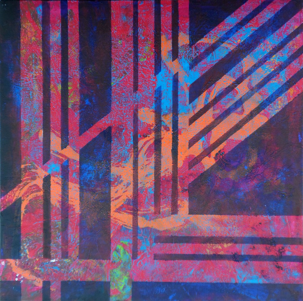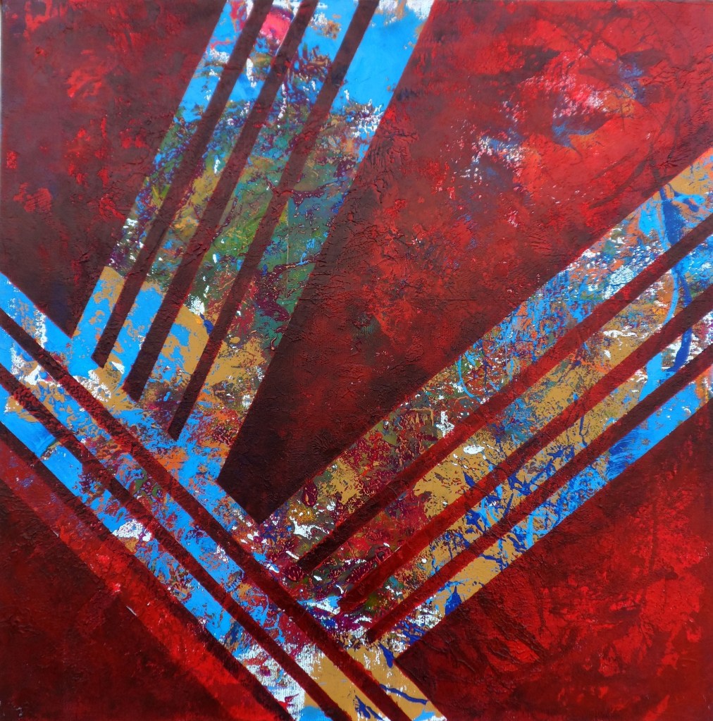 Edremit Zeytinli Köyü atölye çalışmaları dönemi; Soyut; geometrik ve organik kompozisyonlar. Tuval Üzeri Akrilik Çalışmalar ve Kağıt Kolajlar;